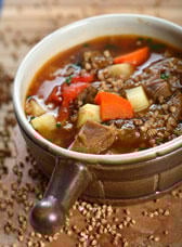 1 kg de cubes de boeuf à ragoût, 2 oignons coupés en tranches, 2 gousses d'ail hachées finement, 310 ml d'eau, 125 ml de sauce chili, 30 ml de cassonade tassée, 30 ml de sauce worcestershire, 15 g de paprika, 5 g de marjolaine séchée, 2 ml de moutarde, une pincée de sel, une pincée de poivre noir, 45 g de farine