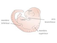 L’embryon mesure désormais environ 12 mm pour 1,7 gramme. Les yeux et l’oreille interne se développent. L’ensemble des organes est dorénavant formé. Le rythme cardiaque devient normal, les vaisseaux sanguins visibles. Le visage se développe ainsi que les yeux et l’oreille interne. Les intestins débutent leur formation dans le cordon ombilical. Les bras et les jambes vont pouvoir s’allonger grâce à l’ossification. L’embryon commence à bouger dans votre ventre. Le sens du toucher commence déjà à se développer.