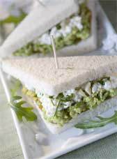 1 avocat, 1 demi citron, pickle d'aubergine indien ("brinjal pickle") ou 2-3 filets d'anchois en conserve, 4 tranches de pain complet, 1 pot de cottage cheese (Longley Farm par exemple) nature ou à la ciboulette, 8 brins de ciboulette, 4 feuilles de salade, une poignée de noix ou de noisettes, sel, poivre