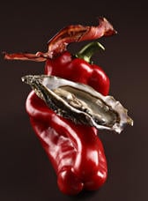 2 poivrons rouges, 3 tranches de poitrine fumée, 10 à 12 huîtres Marennes Oléron (pour l'apéritif : calibre n° 4 ; pour un plat : calibre n°2 ou n°3).