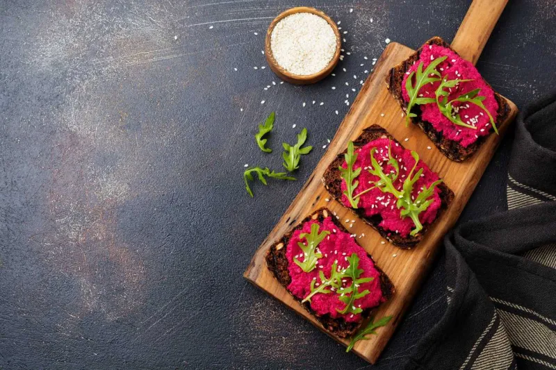 Technique : Étalez du fromage de chèvre frais sur une tartine grillée et déposez-y des rondelles de betteraves cuites sans assaisonnement (ou en purée si vous avez eu le temps d'effectuer une préparation la veille). Vous pouvez ajouter un peu de jus de citron sur le tout pour y ajouter du pep’s !