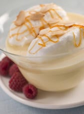 Verser la crème anglaise dans les coupes et mettre au frais.