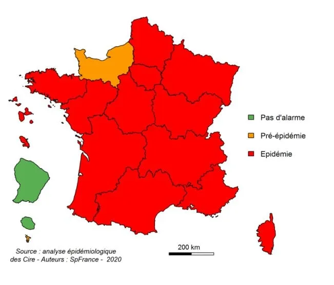 Le bulletin hebdomadaire de Santé publique France indiquait d'ailleurs que l’Ile-de-France et la région Provence-Alpes-Côte d’Azur étaient en phase épidémique.