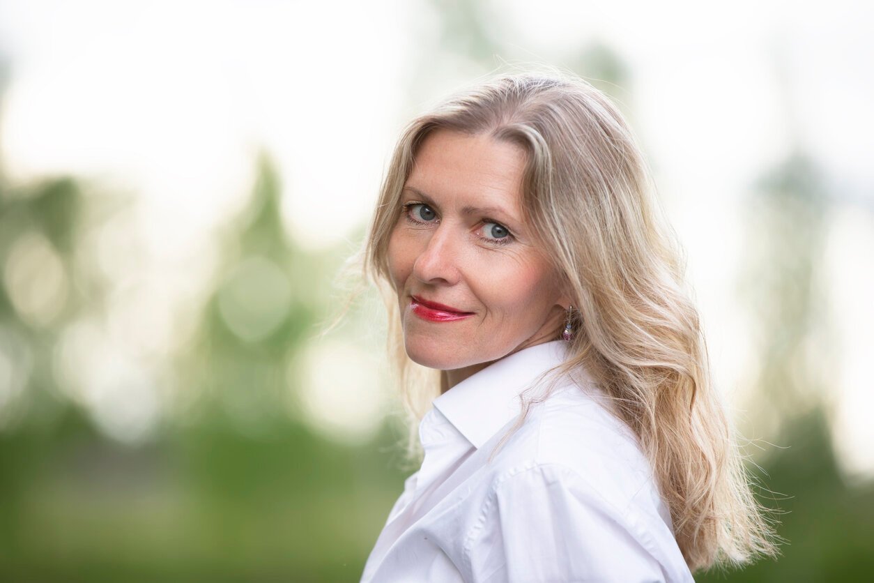 portrait of a beautiful european middle-aged woman fifty-year-old blonde woman with a well-groomed face close-up