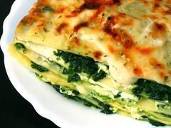 9. Ensuite, dans un plat préalablement huilé, disposer au fond une première couche de lasagne, puis une couche d’épinard et de parmesan.