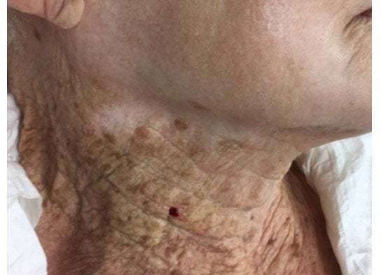 Une photo saisissante montre les effets du soleil sur une femme de 92 ans qui ne protégeait que son visage. Diffusée dans le Journal de l'Académie européenne de dermatologie et de vénéréologie, la photo révèle de nombreux dommages du soleil sur la peau.