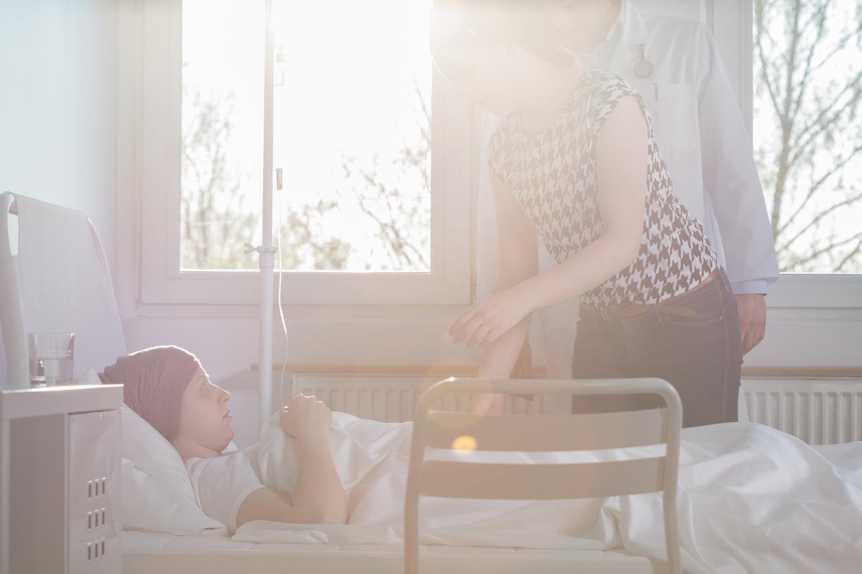 image de femme visitant souffrant d'un carcinome enfant à l'hôpital