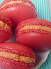 Macaron : 110 g de poudre d'amandes, 225 g de sucre glace, 4 blancs d'oeufs(120 g) mis au frais depuis qqes jours et tempérés, 50 g de sucre semoule, 1 pointe de colorant.