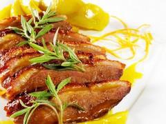 1. Badigeonner le magret avec le miel, le rouler dans le thym.
