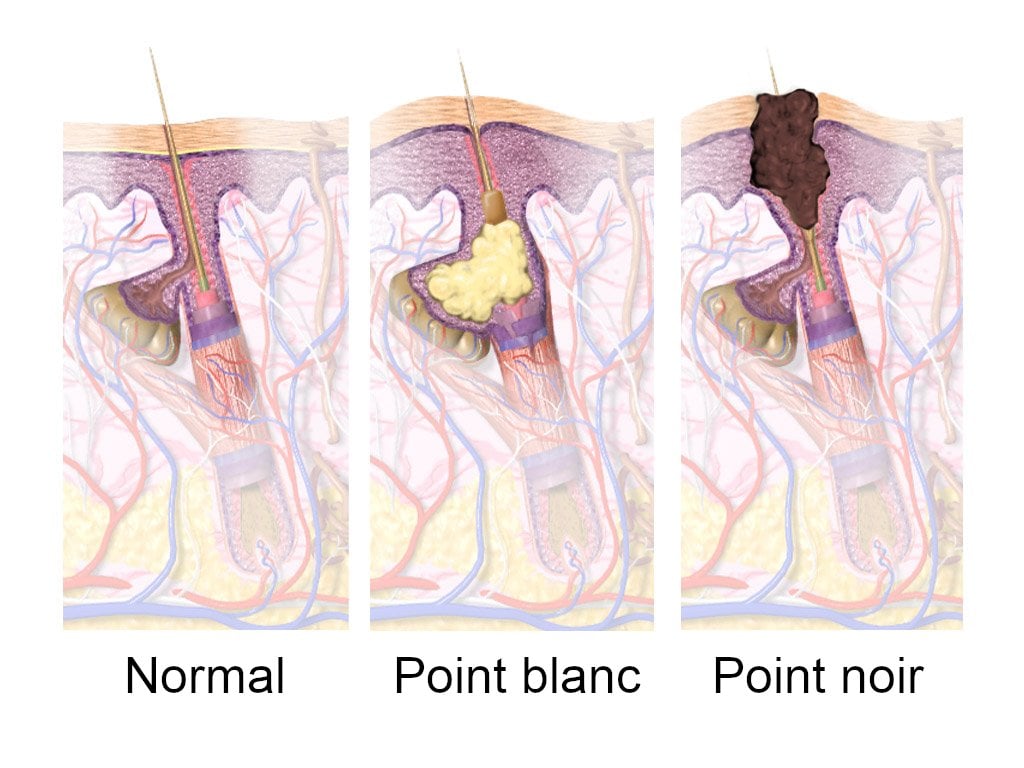 Cette série d’événements entraîne l’apparition de comédons qui peuvent ensuite s’enflammer.