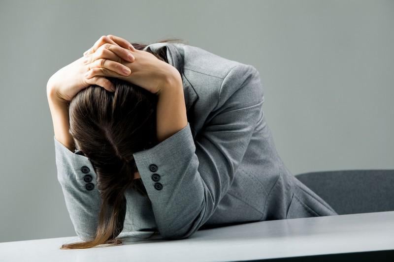 photo d'une femme déprimée assise au lieu de travail et deuil note à l'inspecteur l'image est pré-sept
