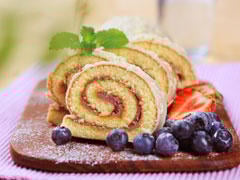 Poser le gâteau cuit sur une surface un peu humide. Le tartiner de confiture et le rouler.