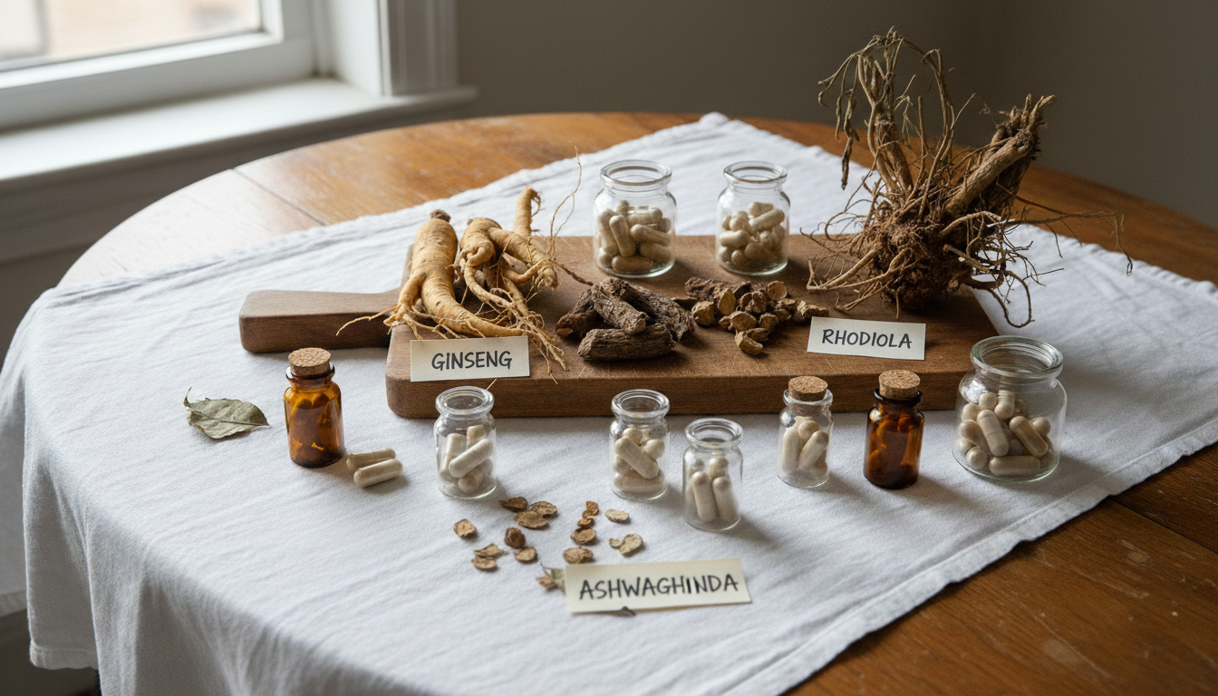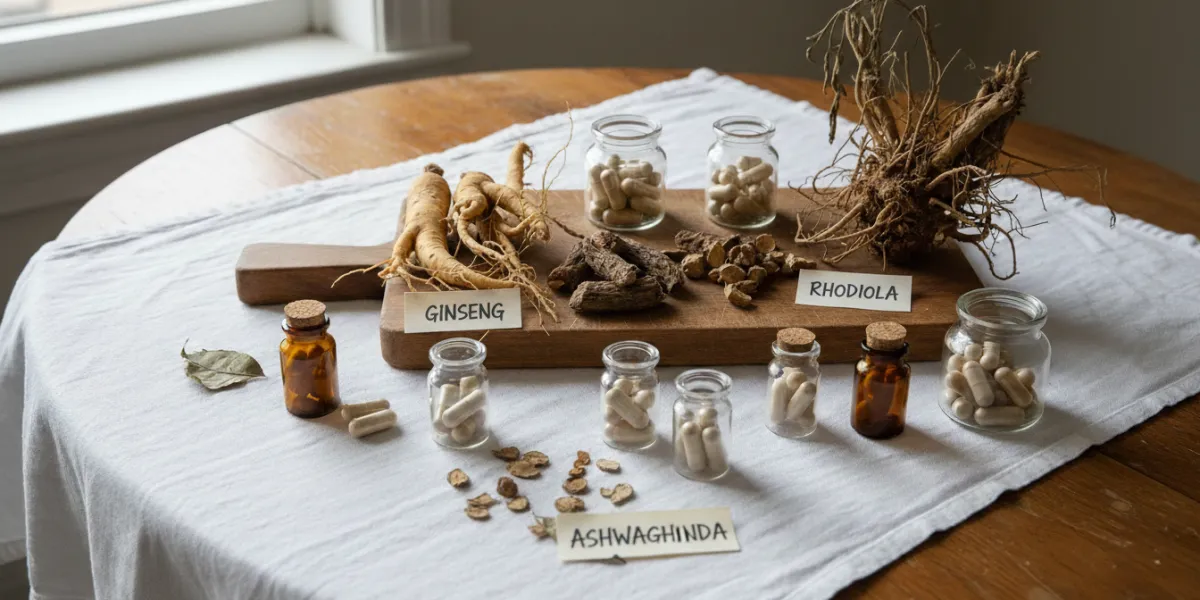 L'ashwagandha est connue pour stimuler la production d'hormones thyroïdiennes. Si cela peut sembler bénéfique, c'est dangereux pour les patients sous Lévothyroxine : l'équilibre du dosage est rompu, risquant de provoquer des signes d'hyperthyroïdie (palpitations, nervosité). Ce mélange est donc déconseillé aux personnes souffrant de troubles thyroïdiens. Bien que moins spécifiques, la rhodiola et le ginseng influencent aussi le système endocrinien, justifiant une surveillance étroite si vous suivez un traitement hormonal substitutif.