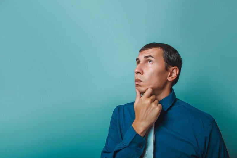 un homme d'apparence européenne trente ans, se souvient-il en pensant sur un fond gris