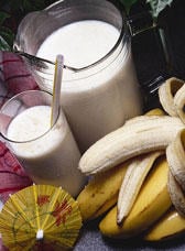 Peler les bananes et les couper en grosses rondelles. Mélanger avec le lait et mixer l'ensemble.