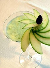 2 pommes, 1/2 banane, 3 cuillères à soupe de sorbet à la pomme, 20 cl de lait concentré sucré, 10 cl de limonade