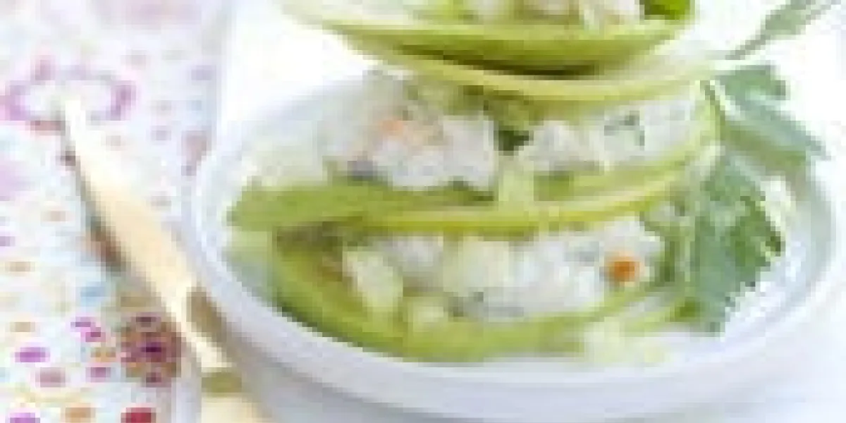 1 bel avocat, 2 pommes granny smith non épluchées, 100 g de chair de crabe égouttée, 1 yaourt nature, 1 citron, 2 branches de céleri, 1/2 c. à café de wasabi, 5 brins de persil, sel, poivre.