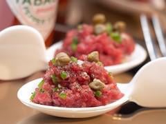 Si le tartare est servi en plat, présenter le mélange d’assaisonnement à part.
