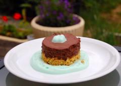 Mousse au chocolat et son biscuit sur espuma de menthe