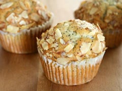 Mélanger et verser l’appareil dans des moules à muffins en silicone. Les parsemer d’amandes effilées puis les glisser au four 20/25 minutes.