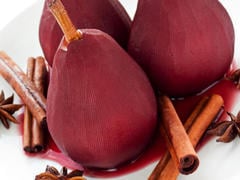 Pocher les poires dans le vin bouillant avec les épices et le sucre pendant 20min. Les retirer du feu et les laisser tremper pendant 2h. Les égoutter.