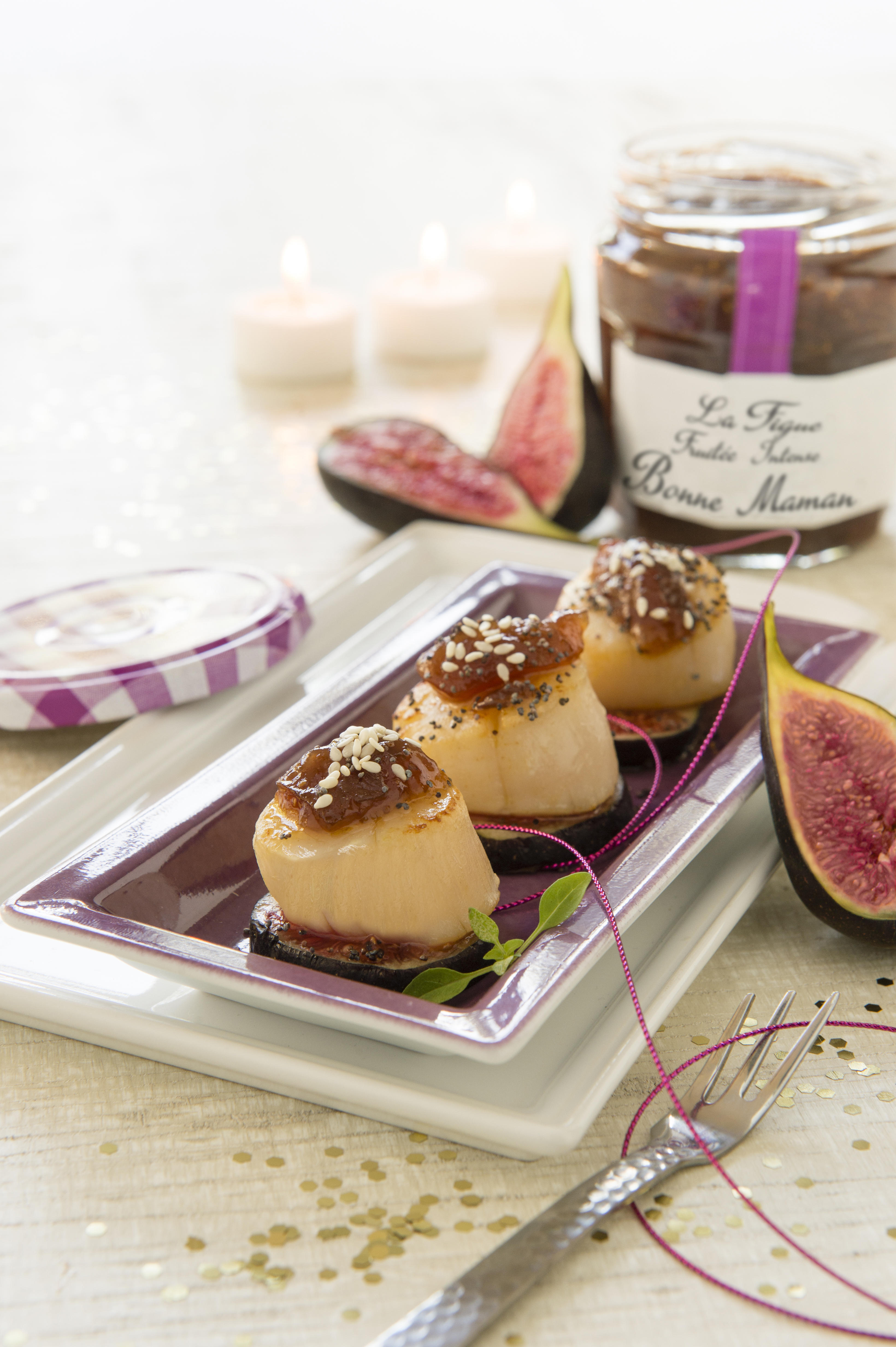 Noix de Saint-Jacques au coulis de figues et vinaigre balsamique