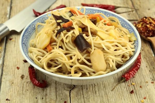 Mettre les nouilles dans un saladier résistant à la chaleur et remplir celui-ci d’eau bouillante. Lorsque les nouilles sont ramollies (compter 5 minutes), les séparer à la fourchette, puis les égoutter et les allonger sur un torchon propre pour les sécher.