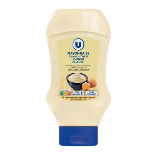 Encore une marque distributeur (Intermarché) avec des produits peu chers et une mayonnaise allégée. Cette dernière contient 8,5 % de glucides, dont 3,5 % de sucres.