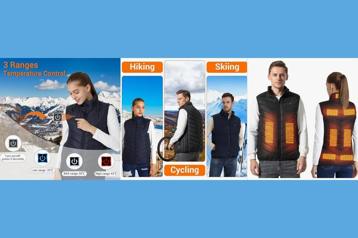 Optez pour les vestes thermiques afin de faire vos promenades en toute tranquilité. "Les gilets chauffants en fibre de carbone sont fabriqués avec une nouvelle technologie de génération rapide de chaleur pour produire une chaleur constante pour les zones sujettes au froid telles que le cou, le dos et la région lombaire, ce qui peut améliorer la circulation sanguine, soulager les rhumatismes et les douleurs musculaires, et apporter chaleur et santé à ceux qui vous sont chers." - Description de l'éditeur.