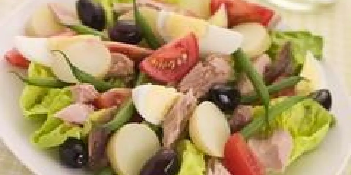 Salade de thon aux pommes de terre sur feuilles de laitue