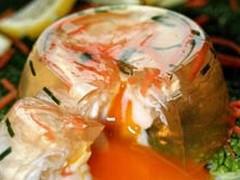 Préparer un bol de gelée instantanée et y ajouter une cuillère à café de jus de citron. Faire refroidir la gelée. Mettre les oeufs dans une casserole d’eau froide et porter à ébullition. Dès que l’eau commence à bouillir, baisser le feu et laisser cuire 3 à 4 minutes (le but étant d’avoir des oeufs mollets). Les passer ensuite sous l’eau froide. Puis les éplucher.