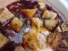 Ensuite, pocher les œufs 3 minutes dans cette sauce au vin. Enfin, dans un plat creux bien chaud, disposer les œufs sur les croûtons et napper le tout de sauce €" en vérifier l'assaisonnement avant. Servir chaud.