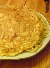 Faire une omelette avec les 4 oeufs restnt et en recouvrir la première omelette aux spaghettis.