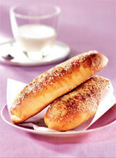 Pendant ce temps, faire chauffer le four à 190°C, préparer un oeuf battu. Quand le four est bien chaud, badigeonner les pains au lait avec l'oeuf battu et ajouter une "bande de cassonade", et faire cuire environ 12 / 15 minutes.