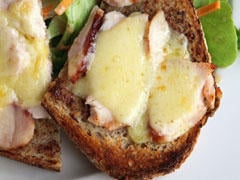 Récupérer les restes de jambon, poitrine, de fromage : comté, gruyère… coupés en lamelles ou râpés, en garnir chaque tranche de pain et les passer 5 minutes au four.