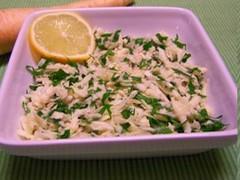 3. Hachez le persil sans ses feuilles, épluchez et hachez l’ail et pressez le citron.