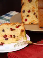 2 œufs et un jaune d'oeuf, une pincée de sel, un sachet de levure de boulanger, sucre (1 sachet de sucre vanillé) et 40 g de sucre, 40 g. cédrat confit en morceaux, 40 g d'écorces d'oranges confites en petits dés, 70 g de raisins secs, 300 g de farine, 150 g de beurre, 200 ml de lait.