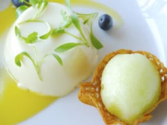 Nos suggestions pour Panna cotta sur carpaccio de fruits et sorbet mandarine