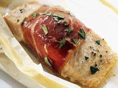 Papillote de saumon et jambon de pays