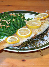 4 truites vidées, du thym, du laurier, trois jeunes oignons, un citron, du sel et du poivre, de l'aluminium.