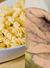 450 g de pennes, 200 g de foie gras mi-cuit, 50 g de parmesan râpé fraichement, sel, poivre.