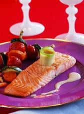 Pavé de saumon rôti et sa sauce crevettes flambée au whisky