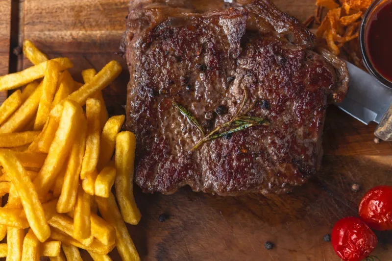 Avec l’entrecôte-frites, attention au compteur des calories. Le plat cumule 190 calories pour la viande et 300 calories pour les frites.