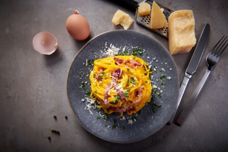 Les pâtes carbonara sont un grand classique mais prudence : 100 grammes correspond à 170 calories ou encore 711 kilojoules, soit près d’un dixième des besoins en calories journaliers des femmes (1800 calories). Il ne faut pas oublier que les assiettes servies contiennent souvent plus de 100 grammes en plus !