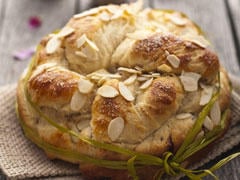 Humidifier les pains avec un peu d'eau de trempage, les parsemer d'amandes effilées et enfourner 20 minutes.