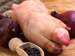 A la fin de la cuisson, couper les pieds de porc en deux.