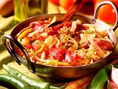 4. Les ajouter en même temps que le bouquet garni aux poivrons, ail et oignons (qui à ce moment-là doivent déjà être très attendris). Saler et poivrer.