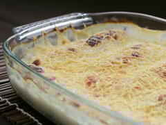 Répéter l'opération autant de fois qu'il y a de jambon et de blancs de poireau. Une fois le plat garni de ces roulés, verser la béchamel, parsemer de gruyère et mettre au four 30 minutes à 210 ° (Th.7)