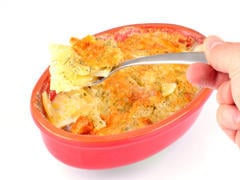 20. Enfourner au four chaud pendant environ 1 heure, mais vérifier la cuisson en plantant la lame d'un couteau au centre du gratin.