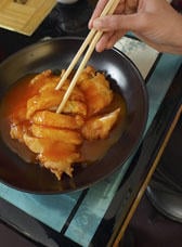 Préparer le caramel dans une cocotte propre. Pour cela, verser 5cl d'eau et ajouter 25 morceaux de sucre. Remuer soigneusement. Dès que le caramel est bien roux, y ajouter d'un seul coup le bouillon (attention aux éclaboussures). Le caramel va se durcir rapidement, remuer sans cesse avec une cuillère en bois pour le diluer petit à petit dans le bouillon.